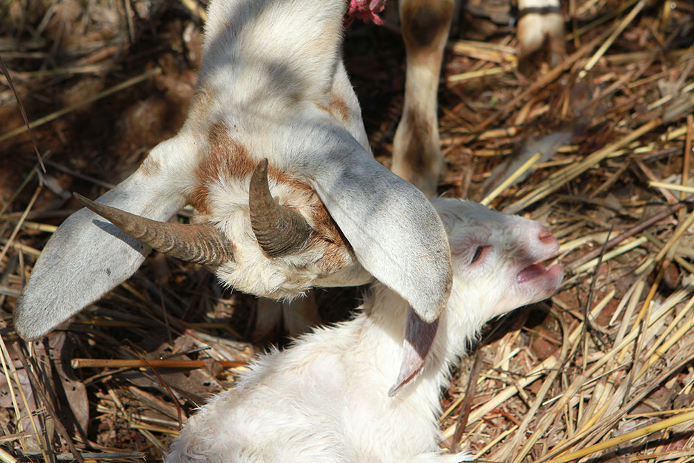 We are thrilled to announce the birth of “Estrellita” (Little Star in Spanish) yesterday morning around 5-6am! Her mother, named Cosita Buena (Little Good Thing) is now happily feeding her, and we are doubly excited because this means that after the baby has grown up, we’ll finally have some fresh goat milk for Anamaya since her mother will keep producing for us if we continue to milk her.
