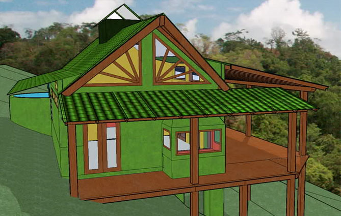 Tropical greenbuilding example from Pura Vida Sunsets Eco Village project in Montezuma