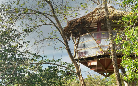 It’s assembled using all materials purchased here locally in Costa Rica, except for these plates that come in a kit for this purpose: Icosahedron Dome Plates. You only get 11 plates because when you make the structure on the ground you don’t do the bottom point, the 12th vertex. In order to get around this Joseph created a custom point at the top to complete the sacred shape.
