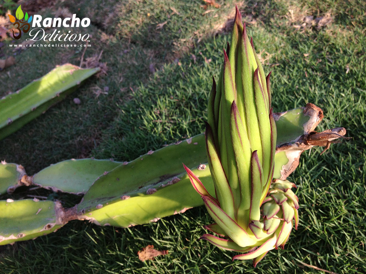 This gorgeous flower comes out of the dragonfruit plant before it creates the actual fruit. In the background you can see that dragonfruit is a cactus, and even stranger, it’s an epiphyte. Like orchids, epiphytic plants cling to other trees rather than growing on the ground, and they spread out on a plant like slow-growing tenacles, sticking to a host tree’s bark. There are many colors of dragonfruit, but they’re all sweet and yummy.