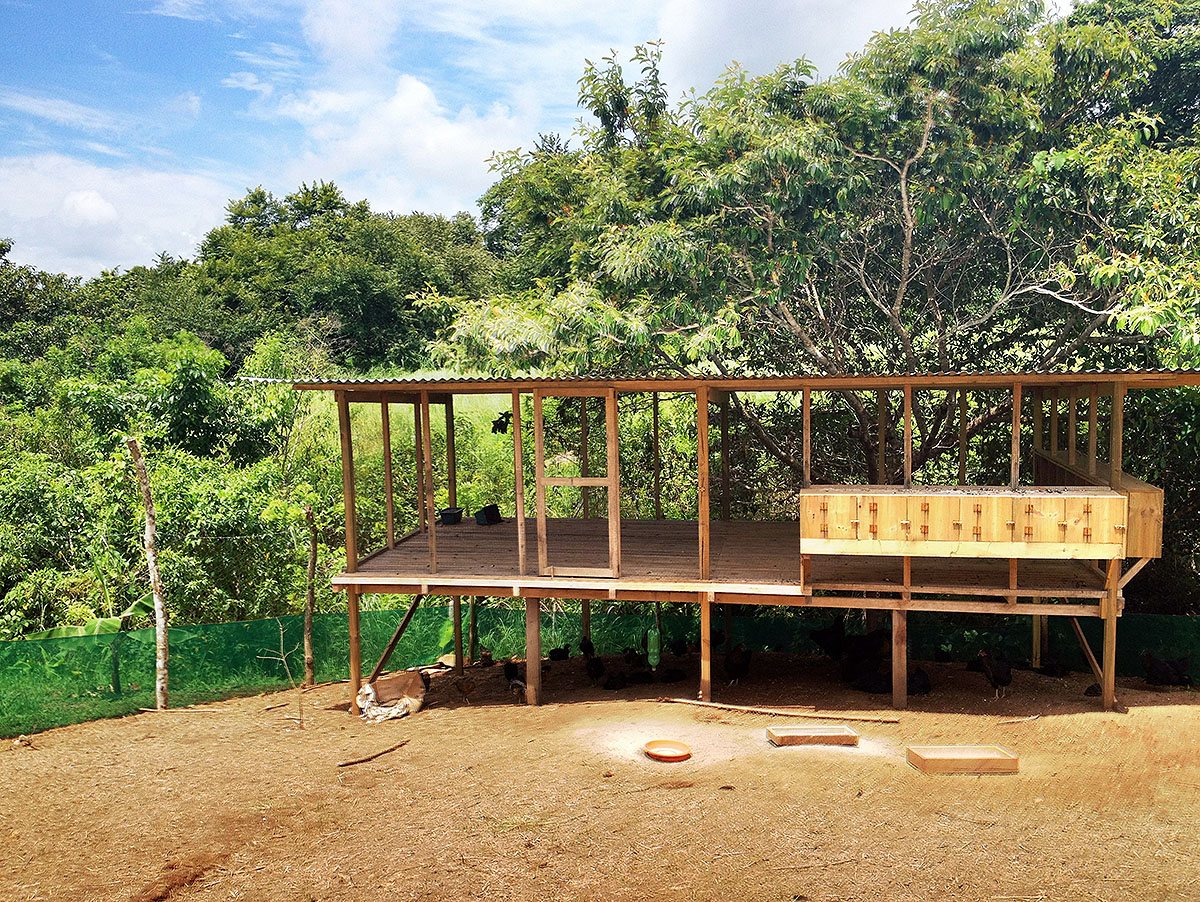I did a a bit of research on the internet before designing our chicken coop. I didn’t like anything I found and didn’t like the ones I visited around Costa Rica. So I invented my own. The coop has a few innovations that are perhaps unique in the chicken coop world: