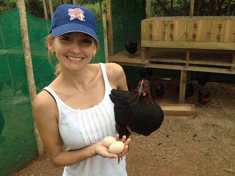 They are all females. Contrary to popular rumor, a rooster isn’t necessary for the eggs. We don’t want a male because they’re so noisy. They just don’t crow in the early morning. They crow all night, and my girlfriend Yasmin is a light sleeper.